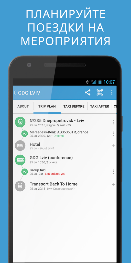 Шукати попутників можна не тільки в поїздах і літаках, а й в авто. Додаток дозволяє продовжити спілкування за межами події: знайти пасажирів (якщо ви водій) або знайти попутника (якщо ви не знаєте як доїхати на подію з іншого міста). Діє програма аналогічно Blablacar.